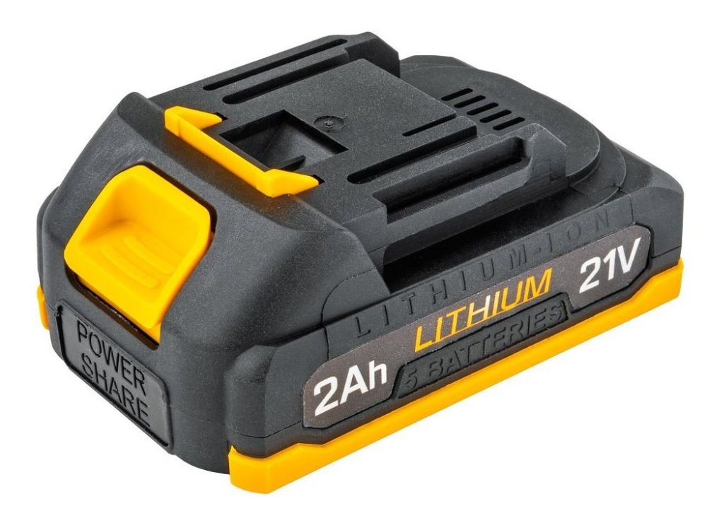 Napájení zajišťují dvě lithium-iontové baterie s napětím 21 V a kapacitou 2,0 Ah. Nabíjení baterie trvá pouhých 1,5 – 2 hodiny.
