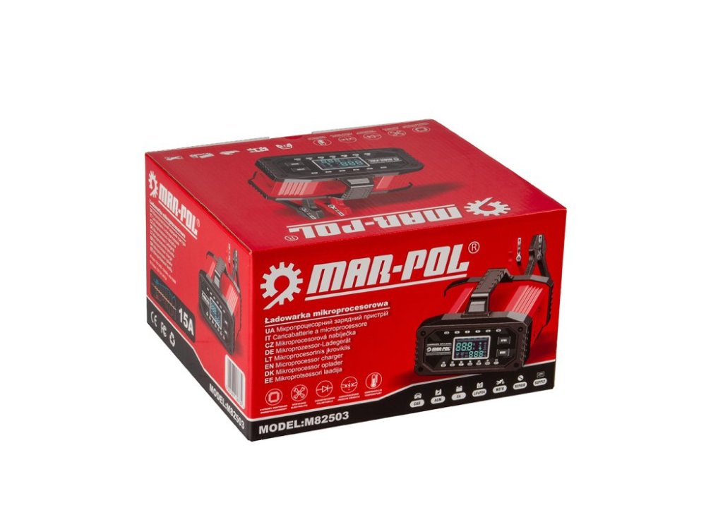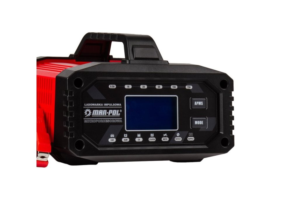 Moderní pulzní nabíječka MAR-POL představuje spolehlivé a všestranné řešení pro nabíjení a údržbu autobaterií. Díky pokročilému mikroprocesorovému řídicímu systému zajišťuje rychlé, bezpečné a plně automatické nabíjení v osobních automobilech, motocyklech i dílenském vybavení. Vhodná pro baterie 12 V o kapacitě 4–250 Ah a baterie 24 V o kapacitě 4–120 Ah.