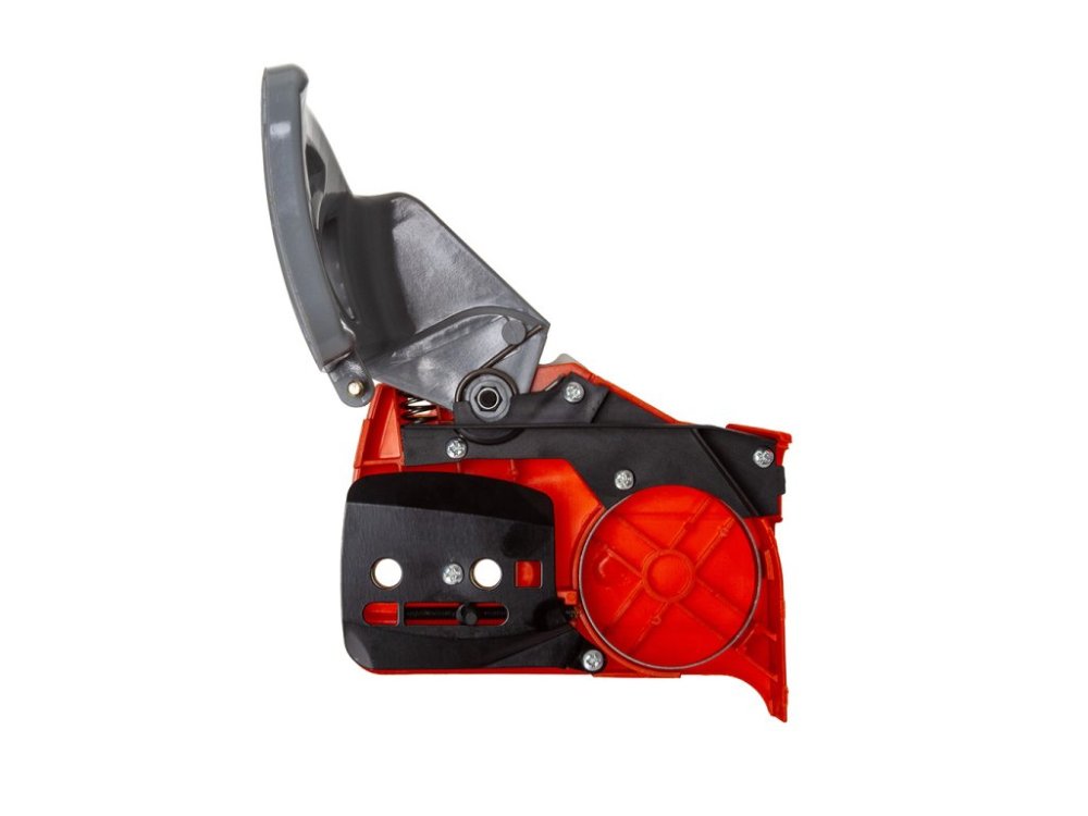 Kompletní brzda představuje nepostradatelný bezpečnostní prvek benzínových motorových pil určených pro řezání větví a lehkého dřeva při zahradnických pracích. Tento kvalitní díl plní dvojí funkci - poskytuje spolehlivou ochranu před náhodným kontaktem s pohybujícím se řetězem a současně umožňuje rychlé zastavení řetězu v případě nouzové situace.