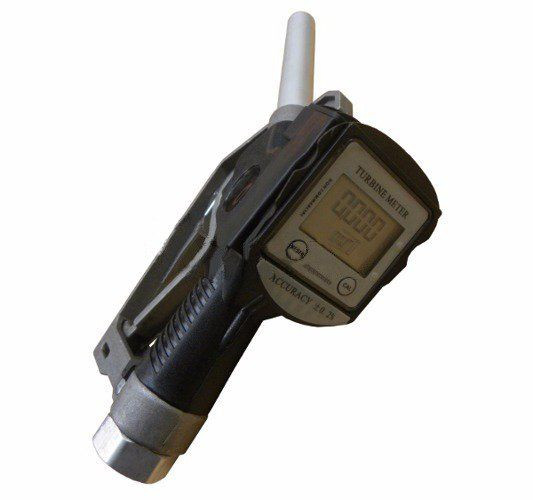 Tankovací pistole na přečerpávání nafty a nízkovizkozního oleje s LCD počítadlem. Moderní pistole paliva je vybavena elektronickým průtokoměrem. Je určena pro použití v domácnostech a dílnách. Elektronický průtokoměr měřicího systému je umístěn nad rukojetí. Turbína má magnetické senzory namontované na lopatkách turbíny tak, že počítání rotace se provádí bez dotyku způsobujícího tření, což se projeví velmi vysokou přesností ±0,2%.