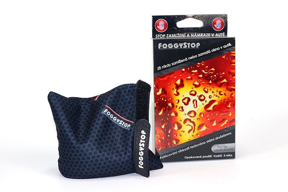 FoggyStop je zařízení, které zabraňuje mlžení a zamrzání skel auta úpravou vlhkosti vzduchu pod rosný bod. Součástí je také kolorimetrický vlhkoměr, který mění barvy v závislosti na vlhkosti vzduchu v automobilu. Úpravu vlhkosti vzduchu provádí pomocí speciální látky s povrchem 90m2/g, takže celkový povrch je více než 1 milión m2. Pomocí tohoto povrchu a proudění mezi tvarovaným obsahem a krystaly dochází k adsorbci vlhkosti a také pachů v automobilu. Absorbovaná vlhkost zůstává uvnitř a neodpařuje se. Obsah lze jednoduše regenerovat (zbavit vlhkosti) v mikrovlnné troubě a znovu použít.