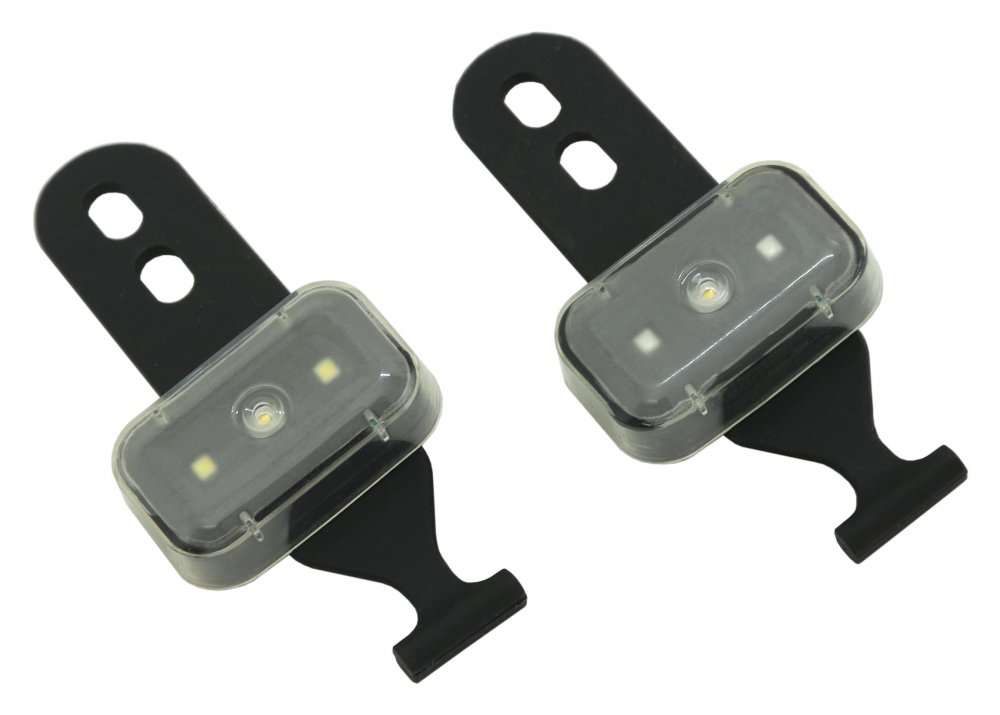 Sada je složena ze dvou kusů, kdy jedno světo je bílé a jedno červené, každé světlo je opatřeno dvěma LED. Napájení je řešeno bateriemi CR2032 (jsou součástí).