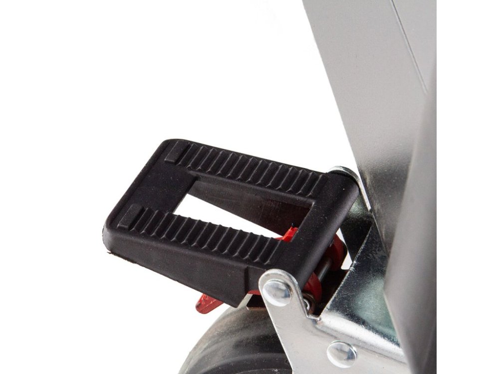 Čtyři velká kolečka (dvě otočná s brzdou, dvě pevná) umožňují snadný pohyb vozíku po celé dílně. Rohové nárazníky chrání okolní vybavení, například karoserii automobilu, před náhodnými nárazy. Pohodlná rukojeť usnadňuje řízení a přesné polohování vozíku.