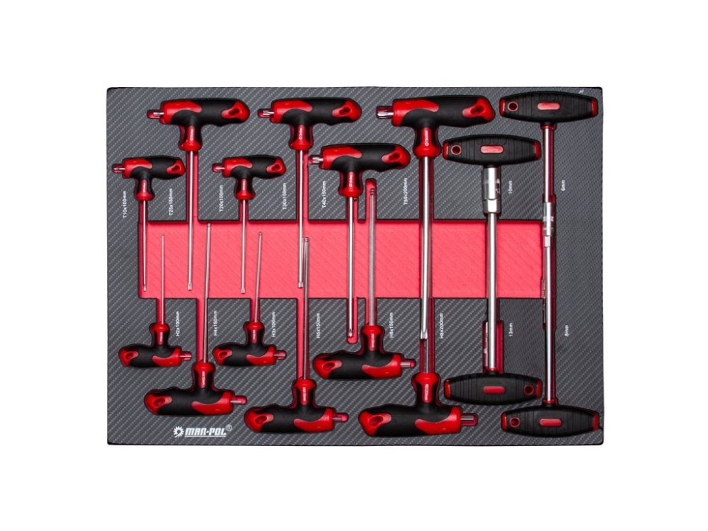 - 6 ks - imbusový klíč s kuličkou s T-rukojetí: H2×100 / H3×100 / H4×150 / H5×150 / H6×150 / H8×200