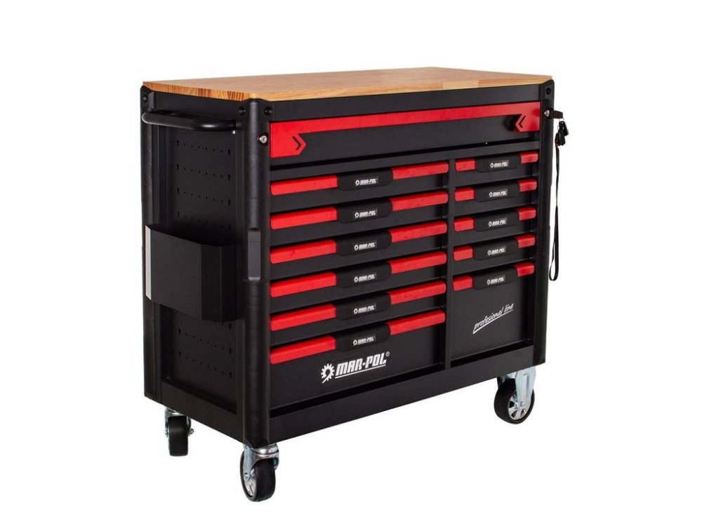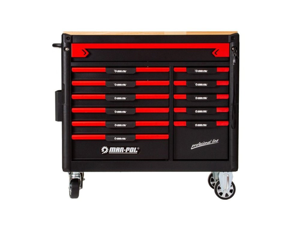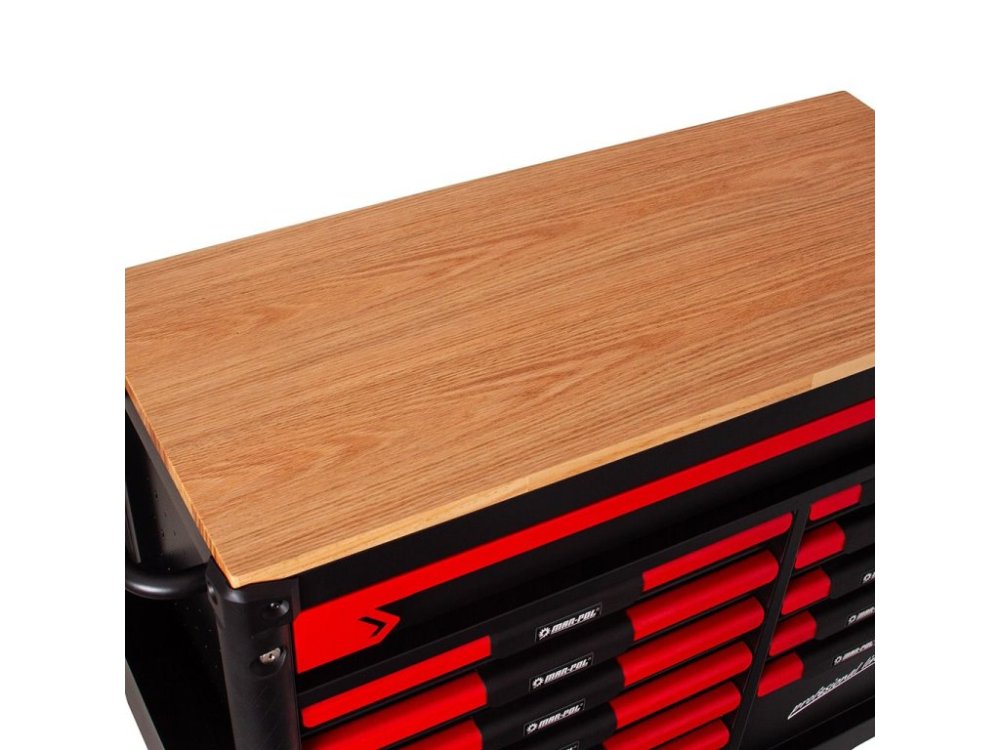 Dílenský vozík na nářadí, 12 zásuvek, dřevěná deska - MAR-POL