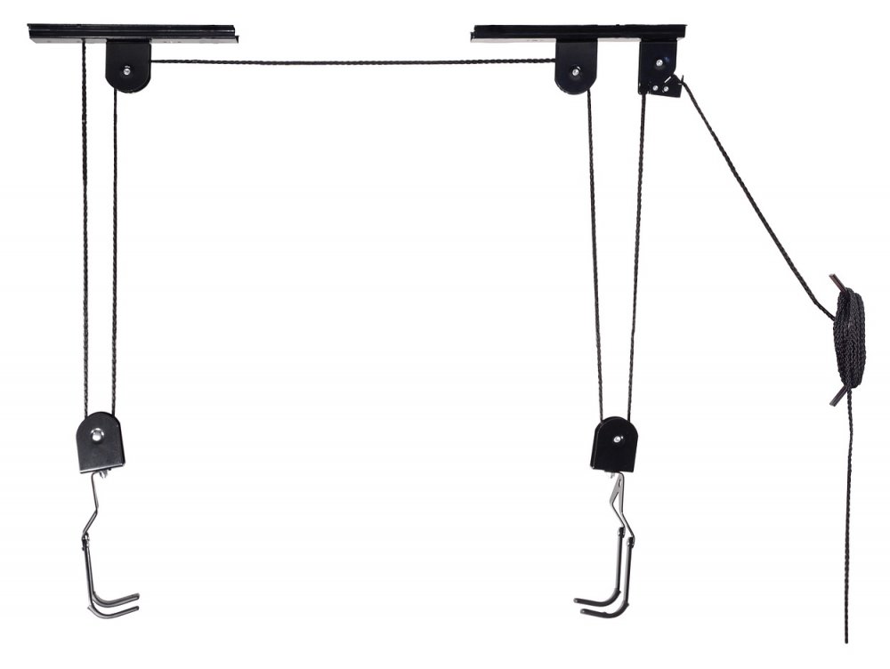 Držák funguje na principu kladkostroje a dokáže snadno zvednout jízdní kolo až do váhy 20 kg a umístit jej pod strop místnosti s maximální výškou 4 m.