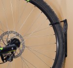 Držák je vybaven hákem pro zavěšení předního kola a vodící deskou, díky které kolo neznečistí zeď a zároveň zabraňuje výraznému naklánění kola do stran.