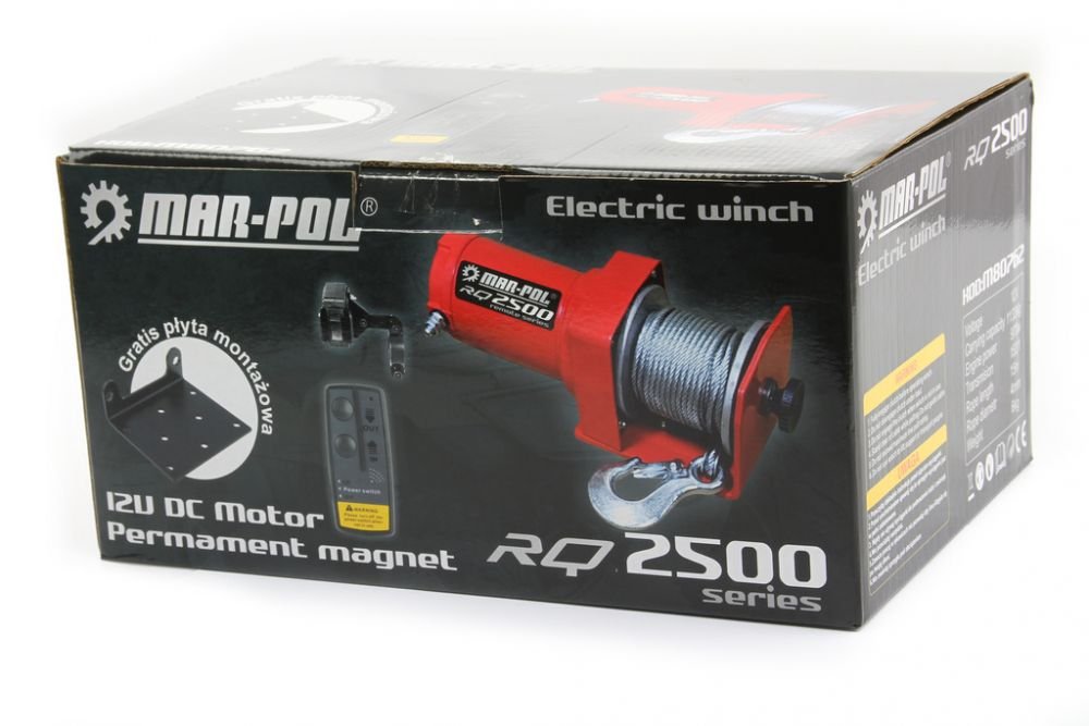 Elektrický lanový naviják 12V 1133kg 2500lbs MAR-POL s bezdrátovým ovladačem