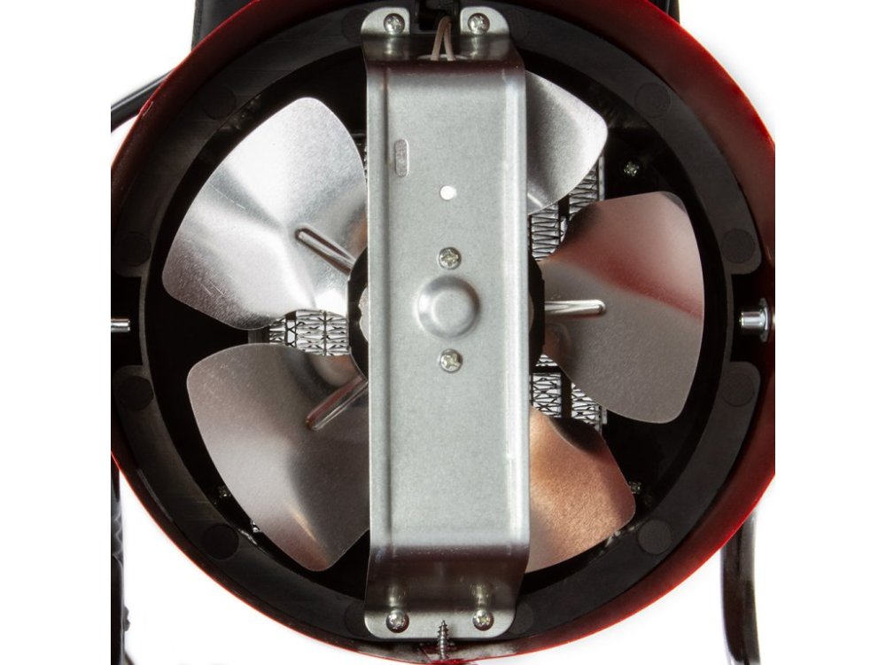 Ventilátor je vyroben z vysoce odolných materiálů a jeho lopatky jsou navrženy pro efektivní distribuci tepla. Průtok vzduchu dosahuje 210 m³/h, což zaručuje rychlé prohřátí i větších prostor. V teplých dnech lze ohřívač využít pouze jako ventilátor bez topné funkce.