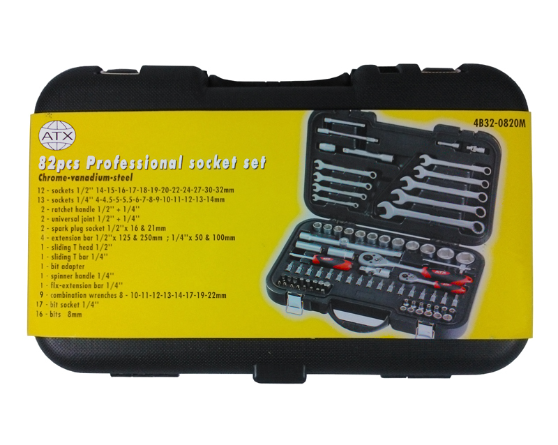 Profi gola sada - 82 dílů. Masivní materiál; kvalitní ocel - chrom - vanad. Firma ATX Czech Republic je držitelem jakosti tvrdosti kovů ZŮS Č. 090-015146.