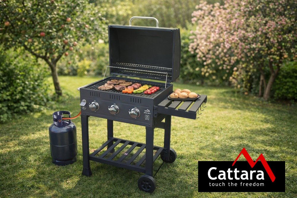Gril je vybaven třemi hořáky Flame Tamer s piezo zapalováním a plynulou regulací. Součástí balení je také spojovací hadice k plynové lahvi s redukčním ventilem.