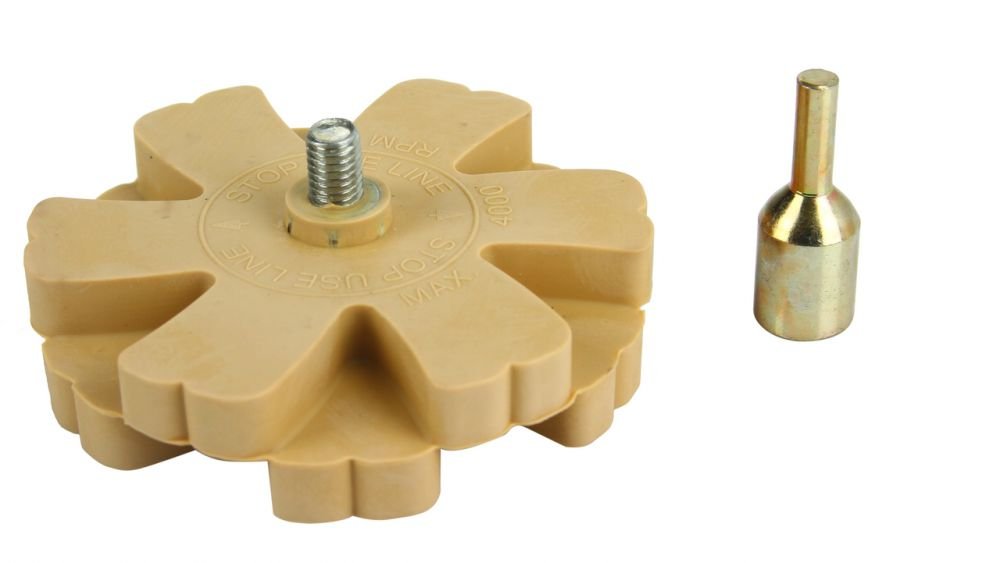 Gumový kotouč k upnutí do vrtačky pro odstraňování lepidla je speciální nástroj, který se používá k odstraňování starého lepidla nebo jiných materiálů ze dřeva, betonu, kovů a dalších povrchů. Tento nástroj se obvykle skládá z gumového kotouče a příslušného adaptéru, který se připojuje k vrtačce. Gumový kotouč je navržen tak, aby byl měkký a flexibilní, což umožňuje odstraňovat staré lepidlo nebo jiné materiály bez poškození povrchu pod ním. Použití gumového kotouče na vrtačku pro odstraňování lepidla může být efektivní a rychlý způsob, jak odstranit staré lepidlo nebo jiné materiály bez nutnosti použití ručních nástrojů, jako jsou škrabky nebo rozpouštědla ani jiné chemikálie k odstranění zbytků lepidla. Tento nástroj je také užitečný pro práci na větších plochách, jako jsou podlahy, zdi a stropy.