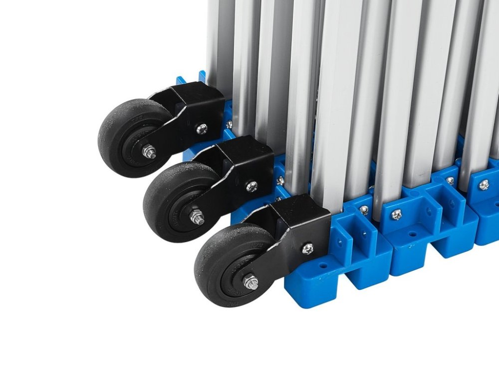 Hliníkový stůl je vybaven třemi přepravními kolečky, která umožňují snadnou manipulaci i ve složeném stavu. Přesun mezi pracovišti nebo do skladu tak zvládne jedna osoba bez námahy. Skládací konstrukce je klíčovou vlastností – stůl se rychle složí do kompaktních rozměrů, které šetří místo při skladování i přepravě ve vozidle. Montáž i demontáž zabere pouze několik minut bez potřeby nářadí. Součástí balení je přepravní (skladovací) obal, který chrání hliníkový povrch před poškrábáním, prachem a nečistotami během skladování a transportu. Potah prodlužuje životnost stolu a udržuje profesionální vzhled.