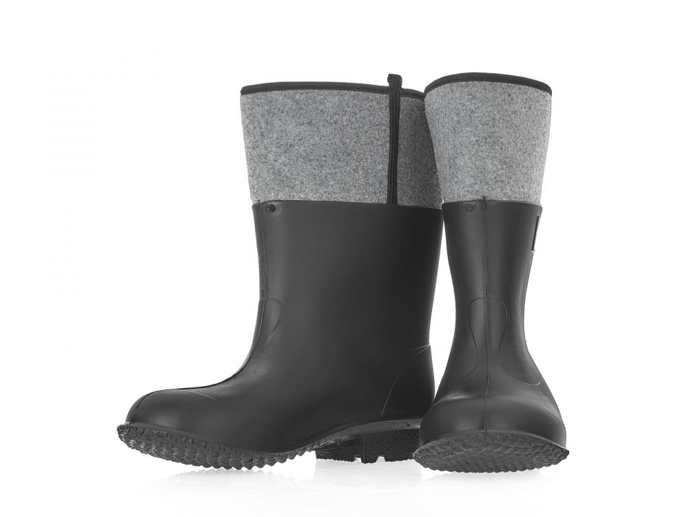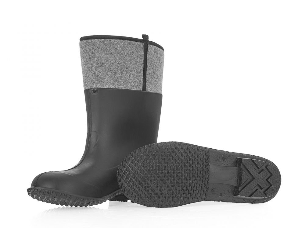 Holínky z PVC jsou těsné a chrání před vodou, vlhkostí, olejem a uklouznutím na keramickém povrchu (SRB). Filcová vložka izoluje spodní část před chladem.