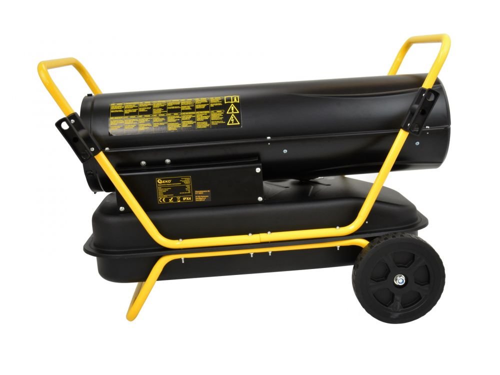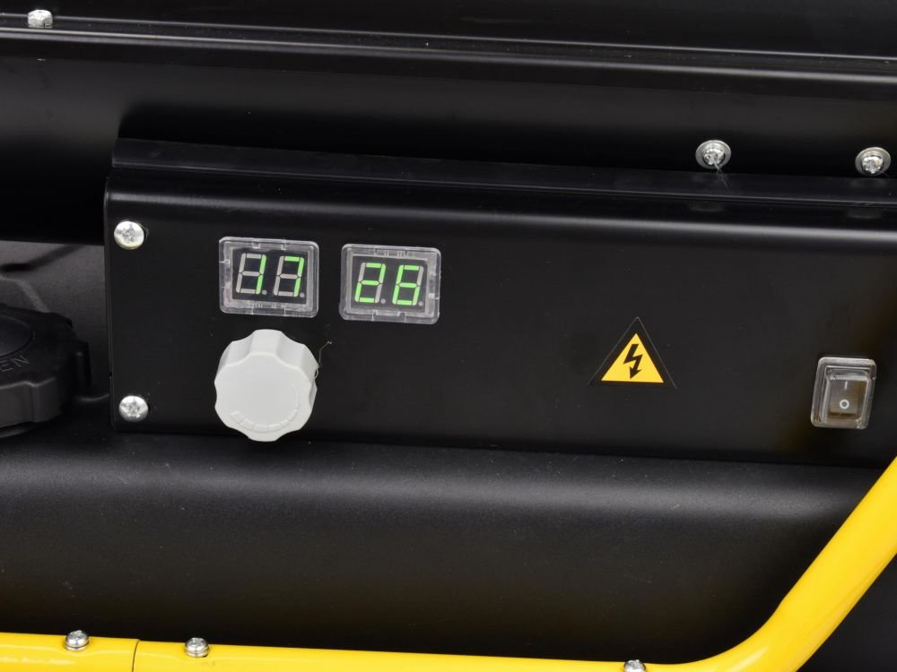 Horkovzdušná naftová turbína s termostatem o výkonu 40 kW od značky GEKO je vysoce účinné topné zařízení, které zajišťuje stálý přítok velkého množství ohřátého vzduchu. Je ideální pro vytápění polootevřených a dobře větraných prostor, jako jsou výrobní haly a sklady. Tato turbína je vybavena digitálním displejem, který zobrazuje zvolenou teplotu vytápění a aktuální pokojovou teplotu, což umožňuje snadnou kontrolu a řízení teploty.