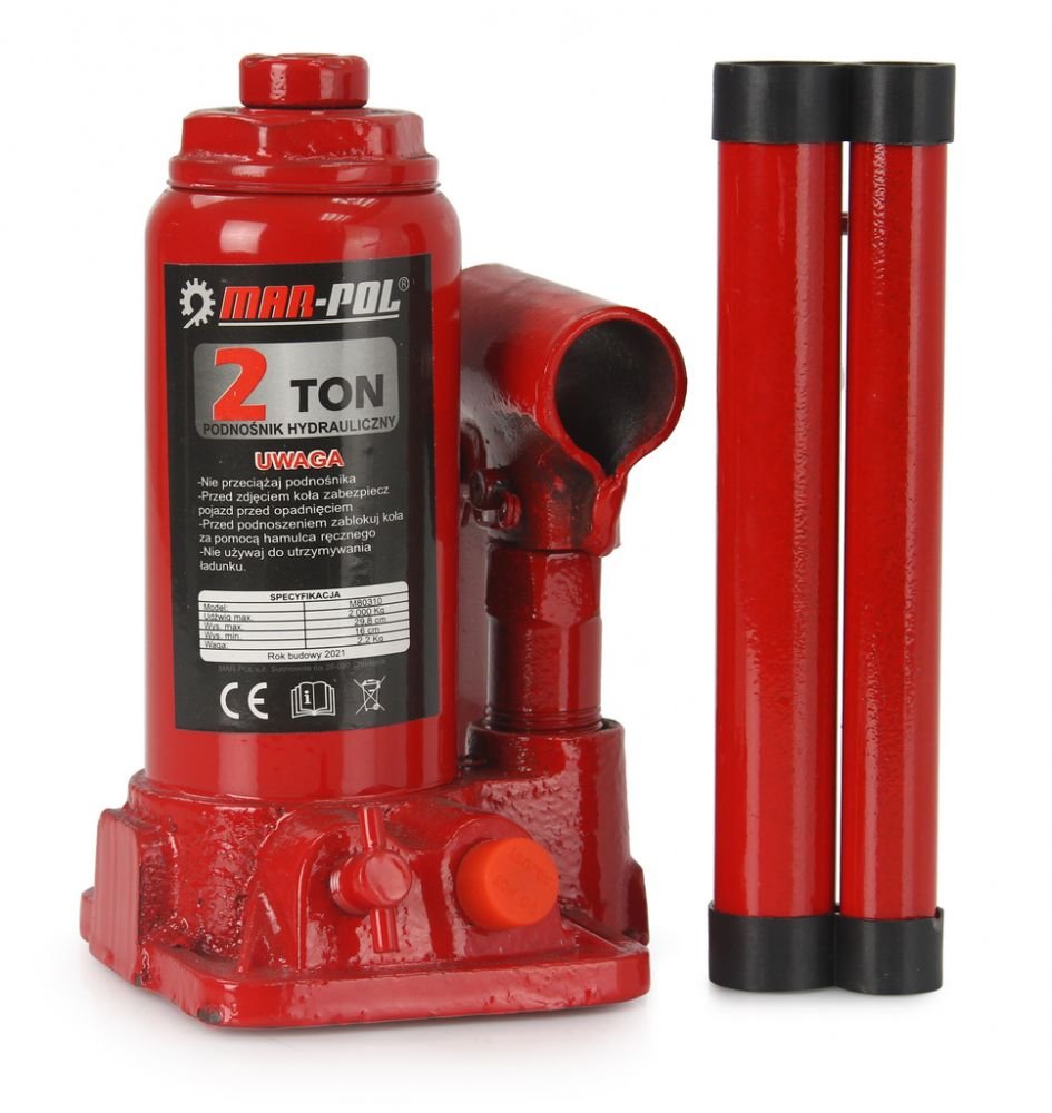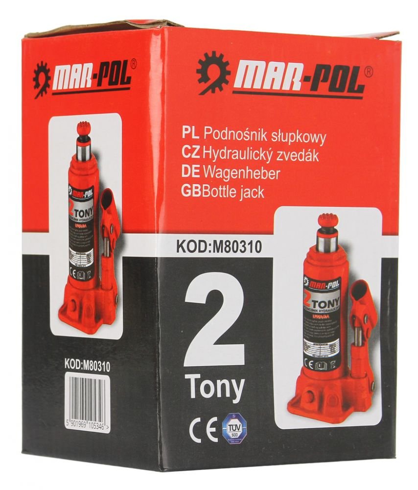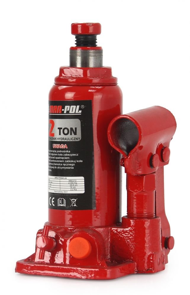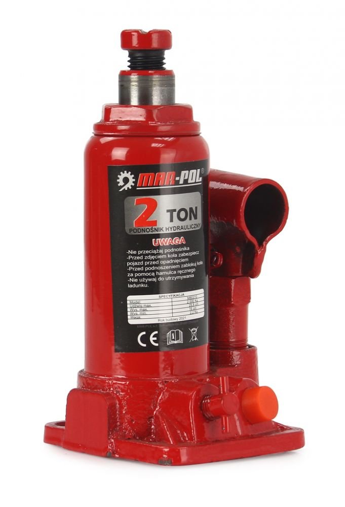 Hydraulický zvedák MAR-POL je ideálním řešením používaným v automobilové dílně nebo domácí garáži. Jednoduchá a pevná konstrukce zvyšuje spolehlivost zařízení. Malé velikosti zaručují snadné použití a vysokou mobilitu. Dvojitá skládací rukojeť. K dosažení maximální výšky zdvihu se používá šroubovací vřeteno.