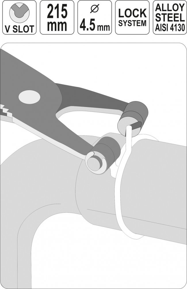 Kleště na hadicové spony se samosvorným uzamykáním. Zhotovení z kvalitní oceli s tvrdostí 40 HRC, délka kleští 230 mm. Zakončení čelistí průměru 12 mm s - profilem šířky 4 mm pro bezpečný úchop s...