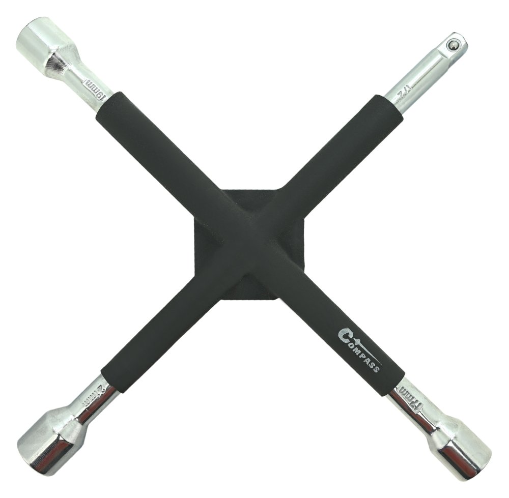 Na jednotlivých stranách je osazen nástavci pro utahování a povolování matic či šroubů kol o rozměrech 17, 19, 21 mm. Čtvrté zakončení je uzpůsobené pro připojení klíče/ráčny velikosti 1/2" a významně usnadňuje povolení zatuhlých, či silně dotažených šroubů.