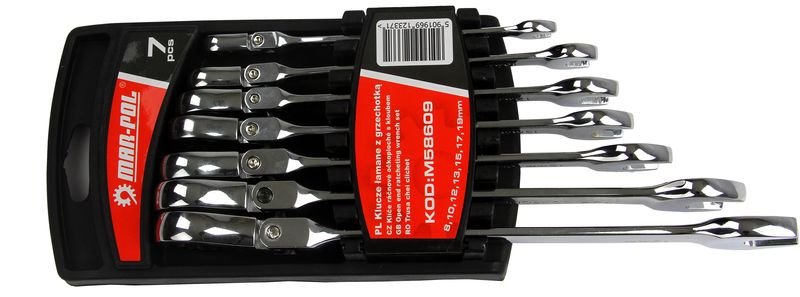 Klíče očkoploché, ráčnové s kloubem 7ks 8-19mm MAR-POL