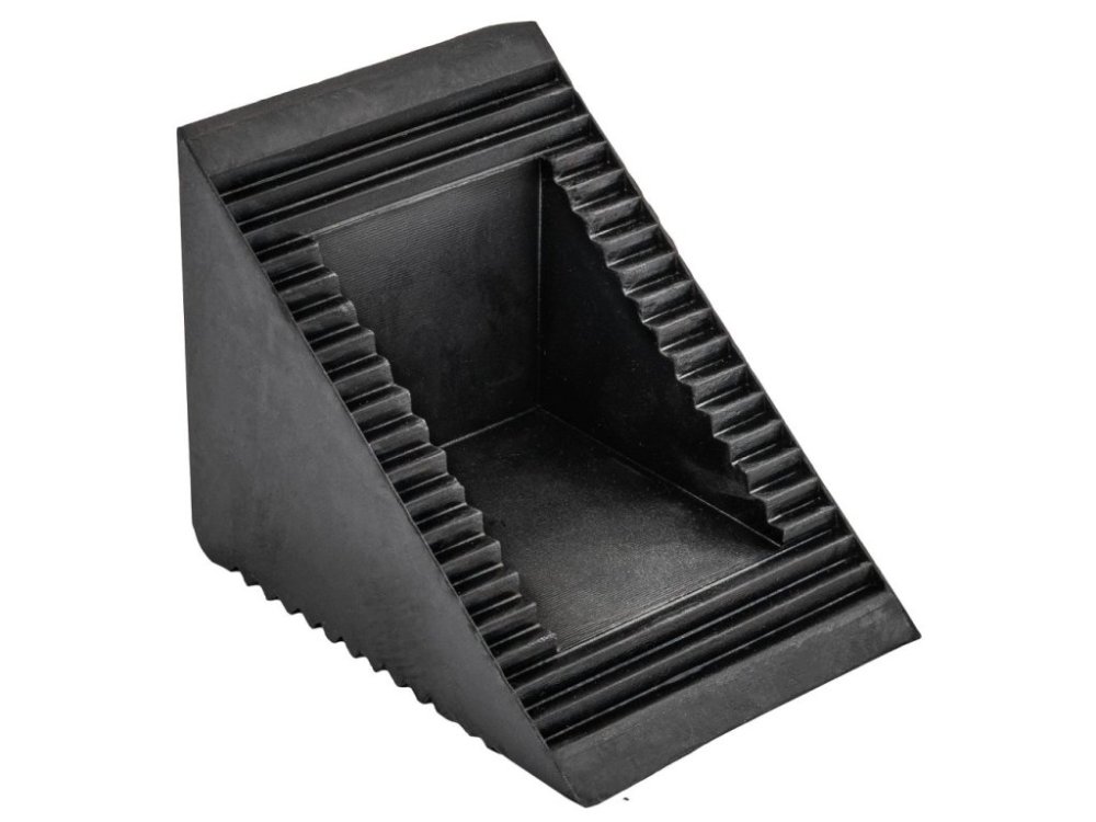 Gumové klíny pod kola zajišťují zabránění pohybu vozidla, což výrazně zvyšuje bezpečnost při provádění servisních prací. Díky vynikající přilnavosti zabraňuje klín nekontrolovanému rozjetí vozidla a poskytuje stabilní fixaci.