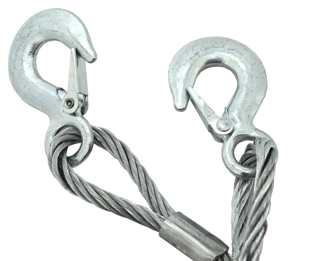 Lano je spleteno z vysoce kvalitních ocelových vláken, která zajišťují vysokou odolnost proti přetržení. Na koncích je lano opatřeno ocelovými háky s bezpečnostní pojistkou pro rychlé a bezpečné upevnění.