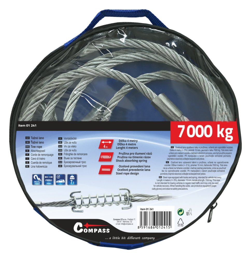 S délkou 4 metry (+/- 5 %), průměrem 10 mm a pevností v tahu 7 000 kg se jedná o robustní nástroj, který je ideálním doplňkem pro každého řidiče. Integrovaná pružina efektivně tlumí náhlé rázy vznikající při vyprošťování vozidla.