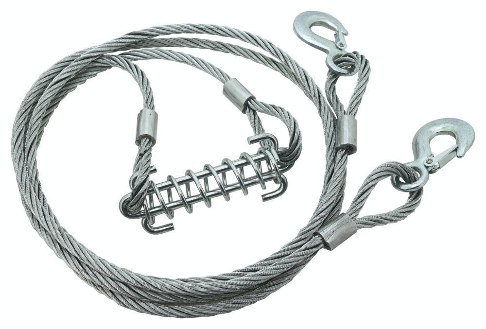 Ocelové lano s háky a pružinou pro tlumení rázů, je navrženo pro spolehlivé a bezpečné vyproštění vozidel.