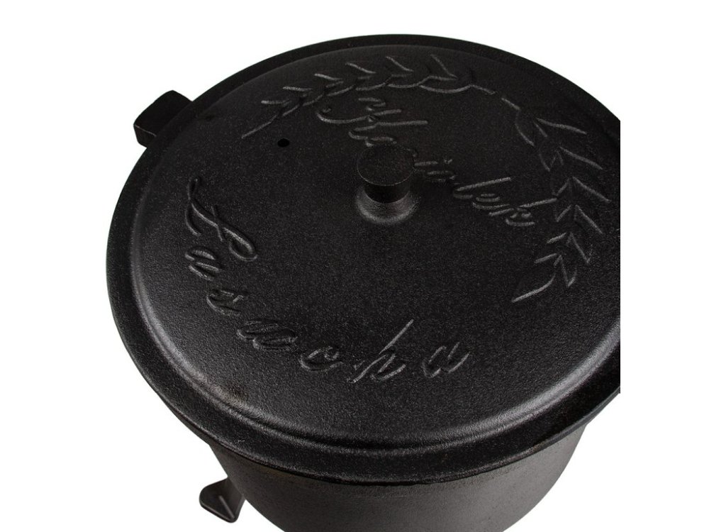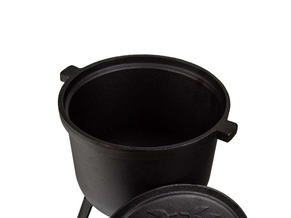 Litinový kotlík o objemu 8 litrů je ideálním pomocníkem pro milovníky vaření na ohni, outdoorové aktivity, kemping či zahradní večírky. Kotlík je vyroben z kvalitní litiny, která je žáruvzdorná se schopností rovnoměrně distribuovat teplo po celém povrchu nádoby. Díky těmto vlastnostem zajišťuje ideální podmínky pro přípravu nejrůznějších pokrmů – od polévky přes dušené maso až po guláš.