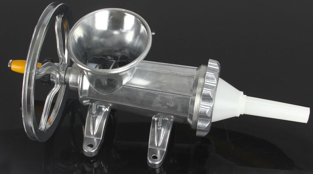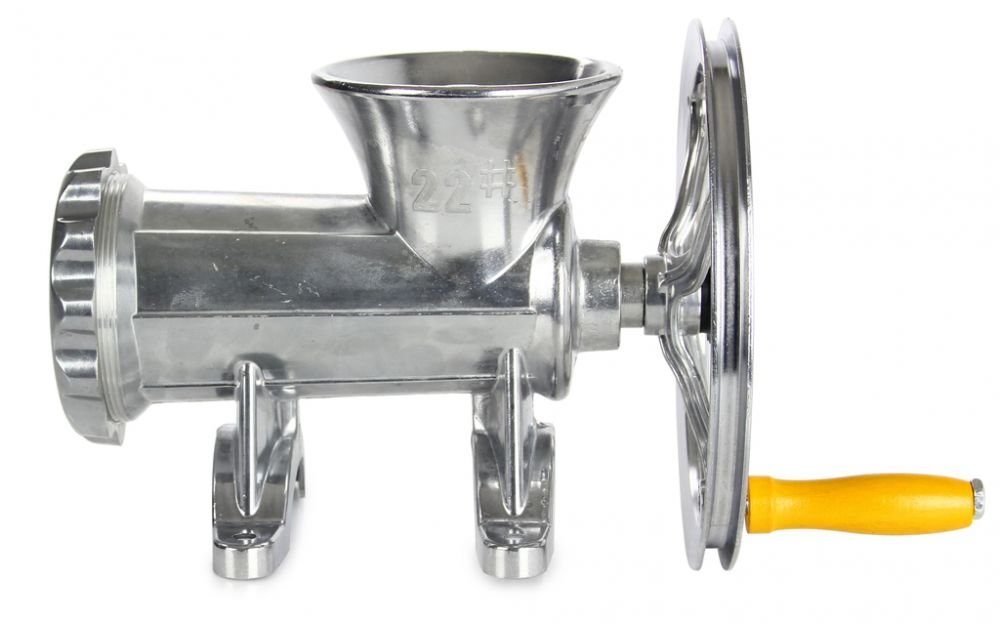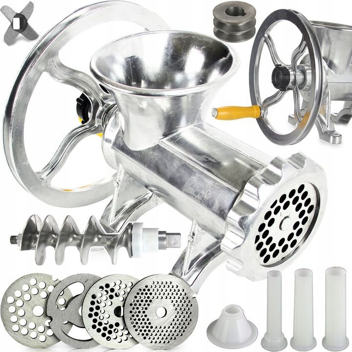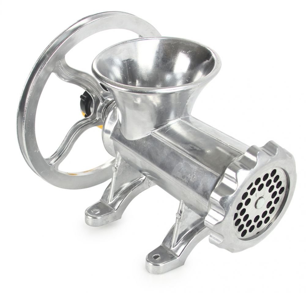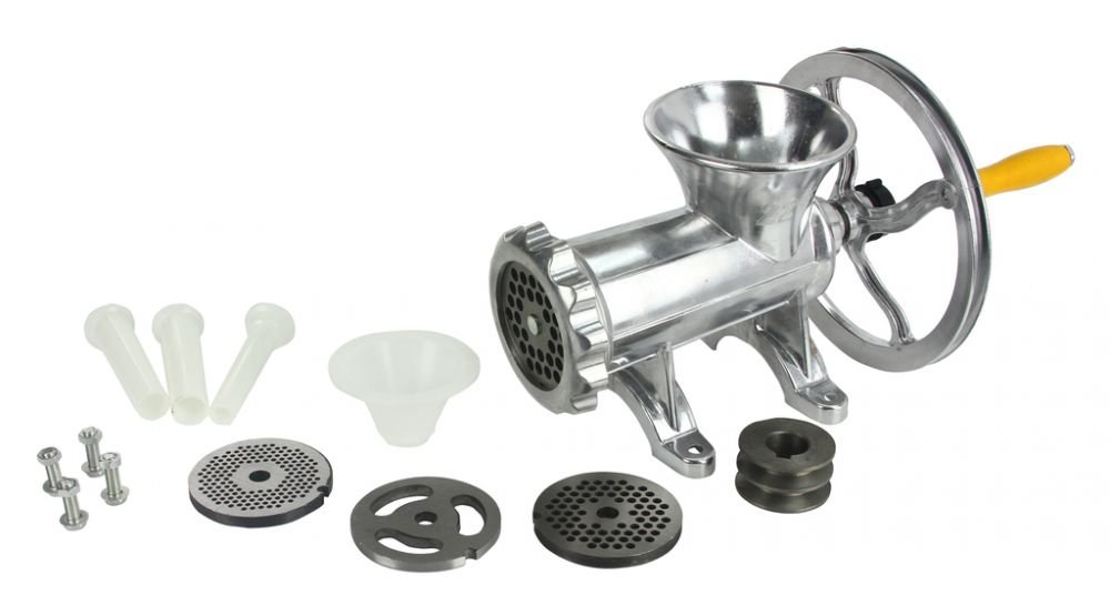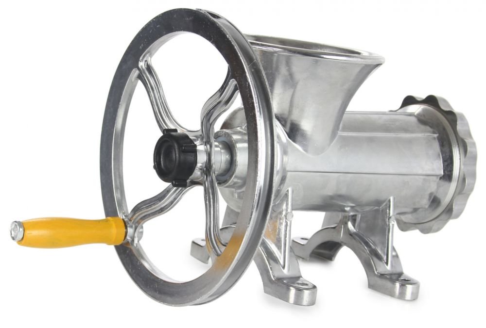 Mlýnek na maso s klikou, řemenicí a dlouhou životností, vyrobený ze slitiny hliníku. Nepostradatelný pomocník v kuchyni a hlavně na každé pořádné zabíjačce. Lze jej napojit na elektromotor a tím z něho udělat profesionální stroj na mletí masa a výrobu klobás.