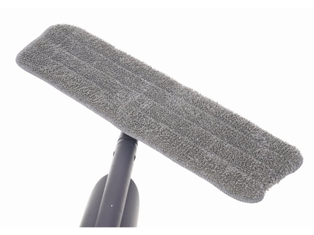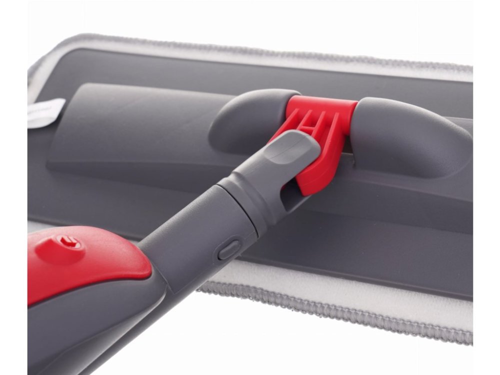 Integrovaný rozprašovač s nádobkou o objemu 350 ml lze ovládat pohodlně tlačítkem umístěným na rukojeti. Není třeba se ohýbat ani používat vedro s vodou. Stačí naplnit nádobku čistou vodou nebo čistícím prostředkem, stisknout tlačítko a okamžitě navlhčit plochu určenou k vytření.