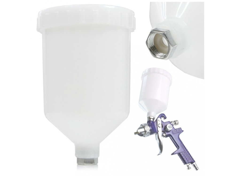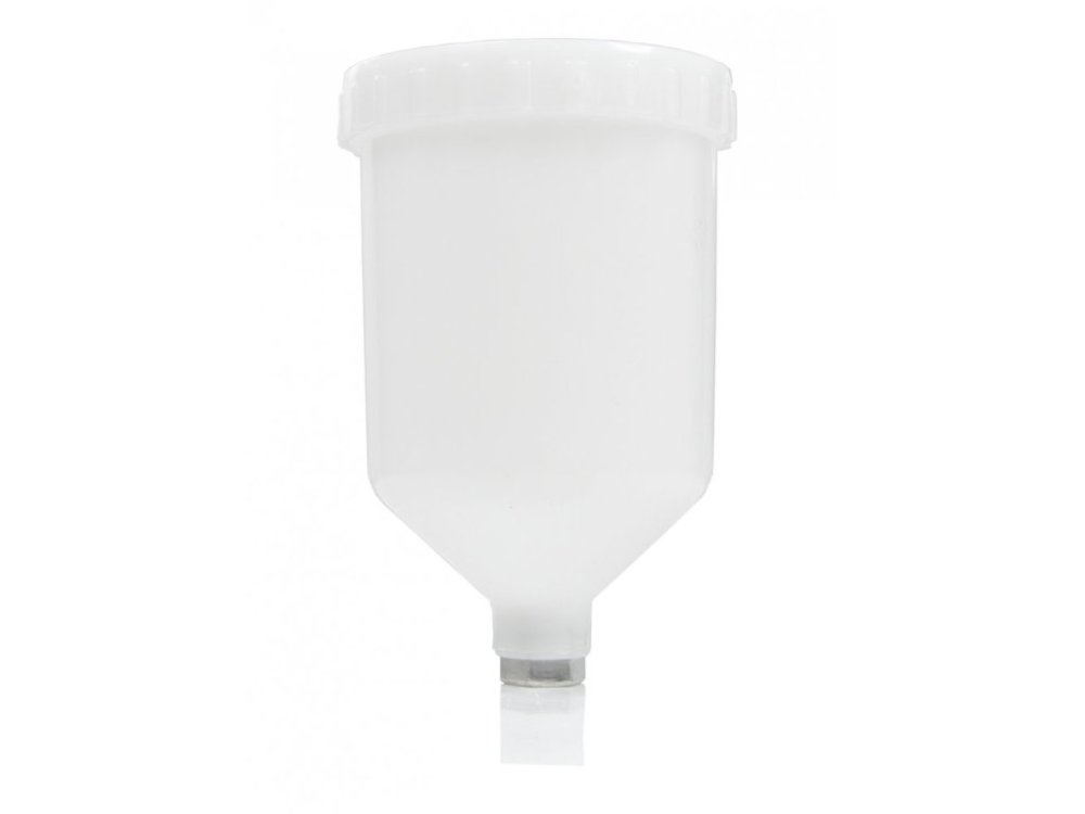 Plastová nádobka pro stříkací pistole na profesionální i hobby malířské či lakovací práce. Objem 600 ml představuje optimální velikost, která poskytuje dostatečné množství materiálu pro plynulou práci bez nutnosti častého doplňování.