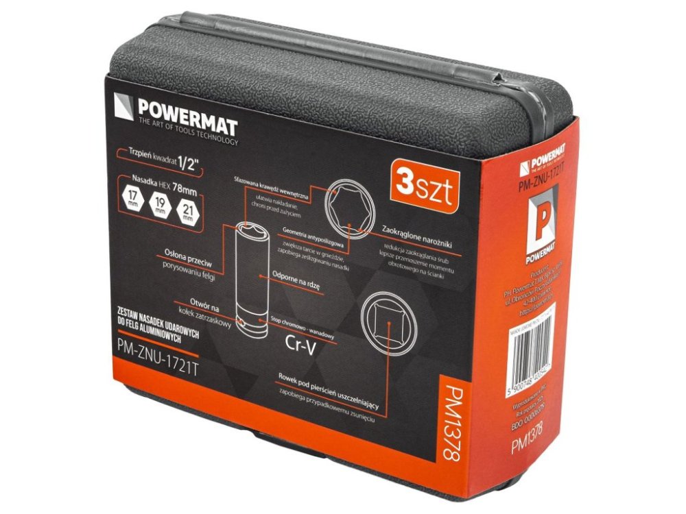 Nástrčné hlavice 1/2" 17, 19, 21 mm na ALU disky - POWERMAT