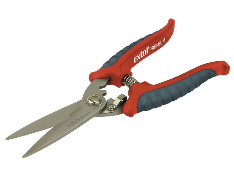 Nůžky víceúčelové nerez, 200mm, na stříhání papíru, textilu, kůže, atd. do průměru 0,5mm,  NEREZ, EXTOL PREMIUM