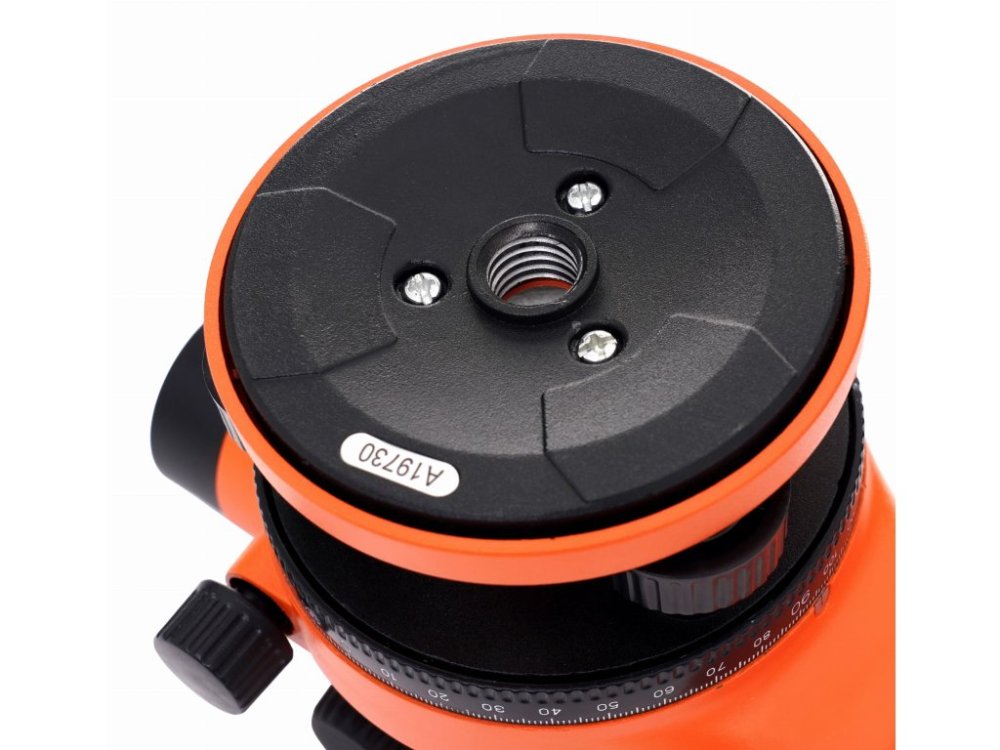 Horizontální kruh s dělením po 1° a pentagonální hranol umožňují rychlou orientaci a kontrolu nastavení libely. Velké ostřicí kolečko zajišťuje pohodlné a přesné zaostření.