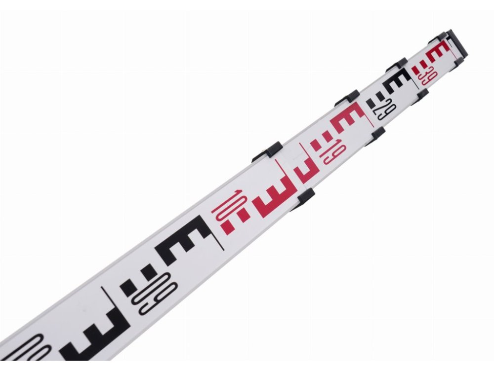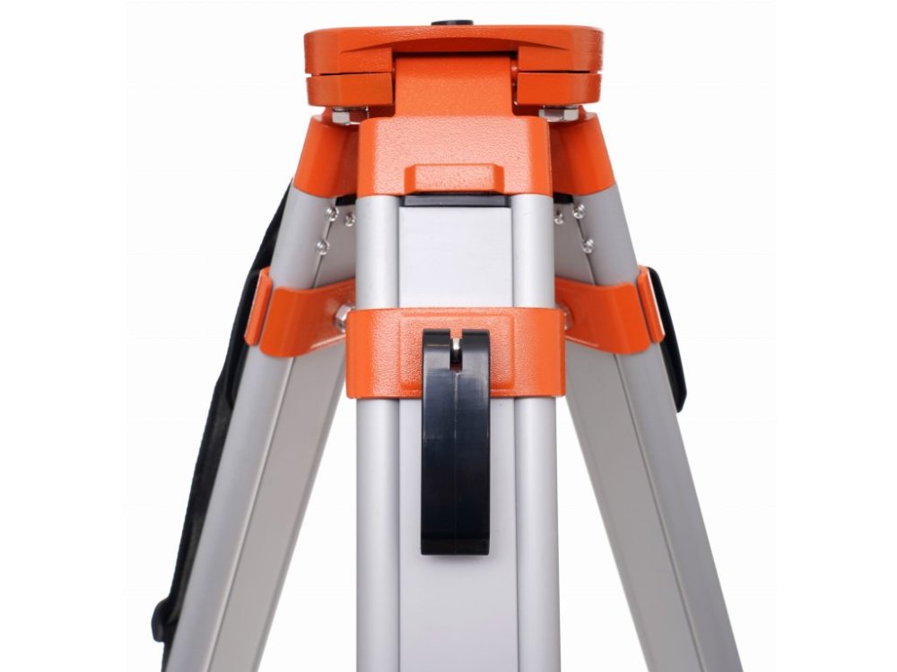 Set obsahuje veškeré nezbytné příslušenství: stabilní hliníkový stativ s univerzálním závitem 5/8", teleskopickou nivelační lať, rektifikační jehlu pro nastavení přístroje, olovnici pro kontrolu svislosti a odolný přepravní kufr chránící nivelační přístroj při transportu.