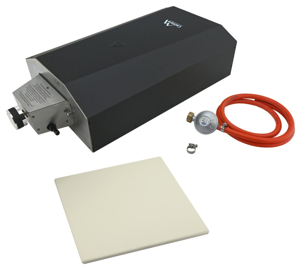 Pec je opatřena plynovým hořákem s vysokým výkonem pro koncentrované a rychlé rozehřátí. Hořák je doplněn piezo zapalováním pro snadné zažehnutí plamene s ovládáním na zadní straně pece. Ovladačem je rovněž možné plynule regulovat výkon.
