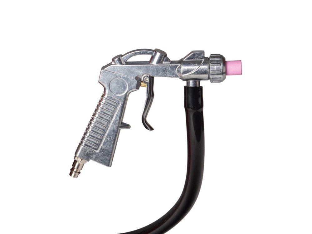 Pískovačka je vybavena tryskací pistolí se sadou čtyř vyměnitelných keramických trysek o průměru 4,5, 5, 6 a 7 mm, které umožňují přizpůsobit intenzitu tryskání typu ošetřovaného povrchu. Keramické trysky jsou odolné proti oděru, což zajišťuje dlouhou životnost a konzistentní kvalitu výsledků. Náhradní trysky lze dokoupit samostatně.