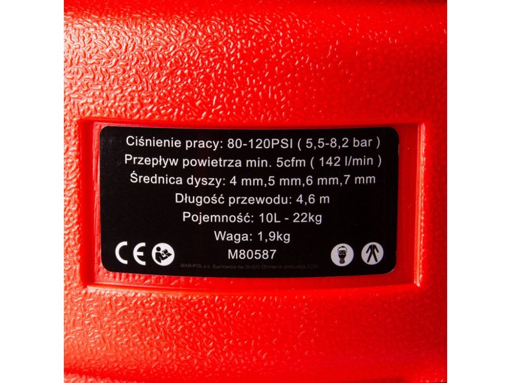 Pracovní tlak pískovačky 5,5–8,3 barů zajišťuje optimální tok abraziva a účinnost čištění v různých dílenských aplikacích. Robustní 10litrová nádrž, která pojme až 22 kg tryskacího materiálu, umožňuje delší nepřetržitou práci bez nutnosti častého doplňování abrazivního materiálu. Kompaktní konstrukce je navržena pro pohodlné uchopení a snadné přenášení.