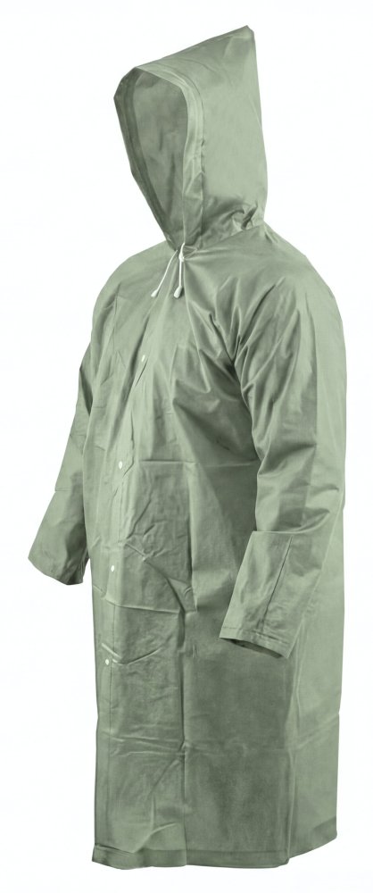 Je vyrobena z voděodolného materiálu EVA, který spolehlivě chrání před deštěm a vlhkostí, přičemž zůstává dostatečně lehký a poddajný pro pohodlné nošení. Volný střih s kapucí umožňuje snadné obléknutí přes běžné oblečení a poskytuje dostatek prostoru pro pohyb.