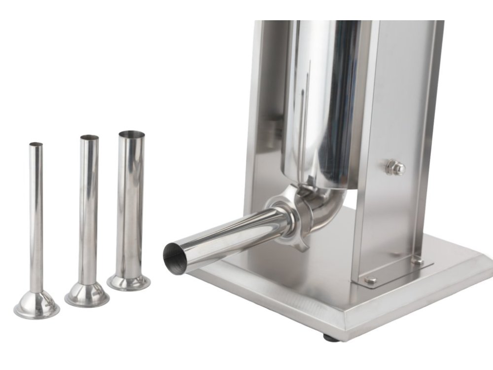 Součástí balení jsou 4 vyměnitelné nástavce o průměrech 16 mm, 22 mm, 32 mm a 38 mm, které umožňují plnění různých typů střev a přípravu klobás nejrůznějších velikostí. Stabilní vertikální konstrukce s gumovými protiskluzovými nožičkami zajišťuje bezpečnou práci.