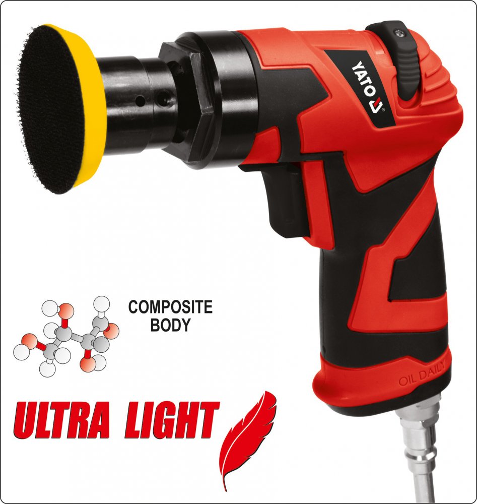 Tělo brusky je z lehkého kompozitního materiálu s drobnými rozměry.