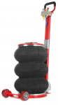 Podtlakový ventil, který umožňuje spustit zvedák bez zatížení a volně vyjet zpod vozu. Ocelová struktura. Možnost vertikálního polohování výtahu bez dodatečné podpory. Práškové lakování jako antikorozní ochrana. Gumový měch z odolné pryže (3 úrovně). Stabilizační dalekohled uvnitř měchu. 80 cm dlouhá rukojeť s tvarovaným tvarem usnadňuje manévrování s výtahem. Kolečka Ø70 mm, vyrobená z odolného plastu, usnadňují zasunutí zvedáku pod podvozek. Ventily s pohodlnými, barevně odlišenými pákami: přívod - modrá, podtlak - červená, zlatá - odblokování. Pojistný ventil, který zabraňuje prasknutí polštáře v případě překročení povoleného tlaku stlačeného vzduchu (nad 12 bar). Gumová patka zajišťující zvednutý prvek proti sklouznutí.