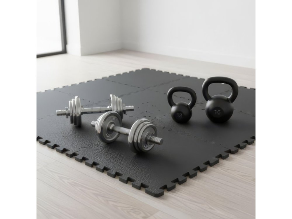 Každý díl je vyroben z kvalitní EVA pěny, která zajišťuje optimální poměr mezi pevností a pružností. Tloušťka 1 cm poskytuje účinnou izolaci od chladné podlahy a vynikající tlumení nárazů při pádu závaží nebo intenzivním cvičení. Materiál je ekologicky šetrný, netoxický a bezpečný pro dlouhodobé používání.