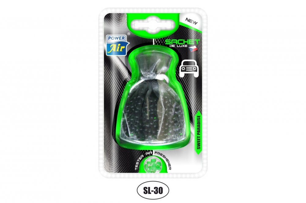 Vonné perličky ze speciálního parfémovaného granulátu. Granulát je vyroben z materiálu s vynikající nasákavostí a postupným uvolňováním vůně. Speciální výrobní postup zajišťuje silnou a stálou vůni. Stříbrné sáčky dodají půvab každému automobilu. Dlouhotrvající účinek.