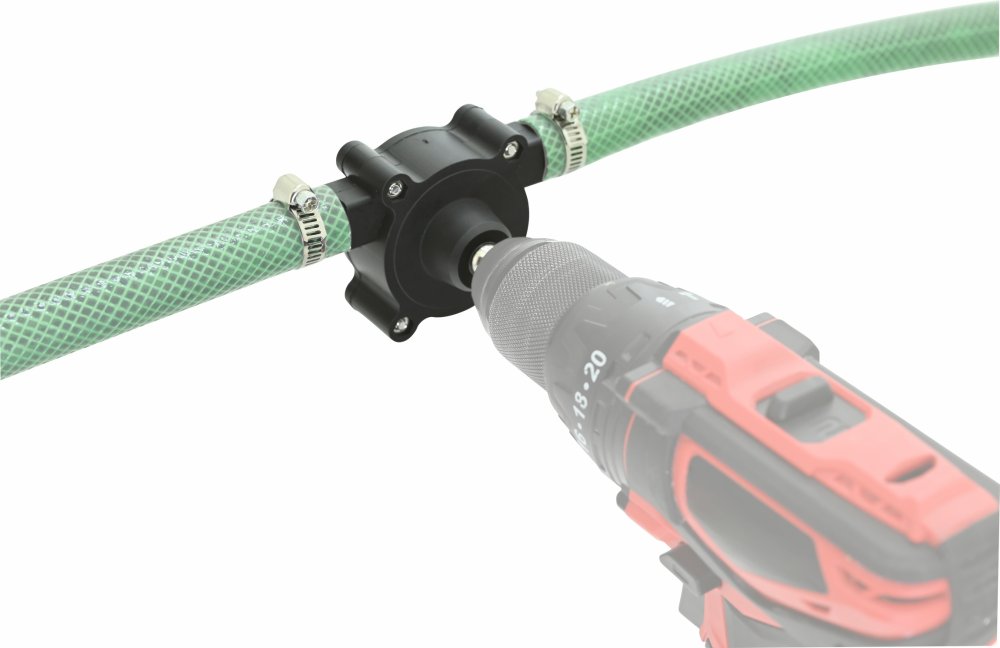 Přenosné čerpadlo kapalin s pohonem pomocí vrtačky.
