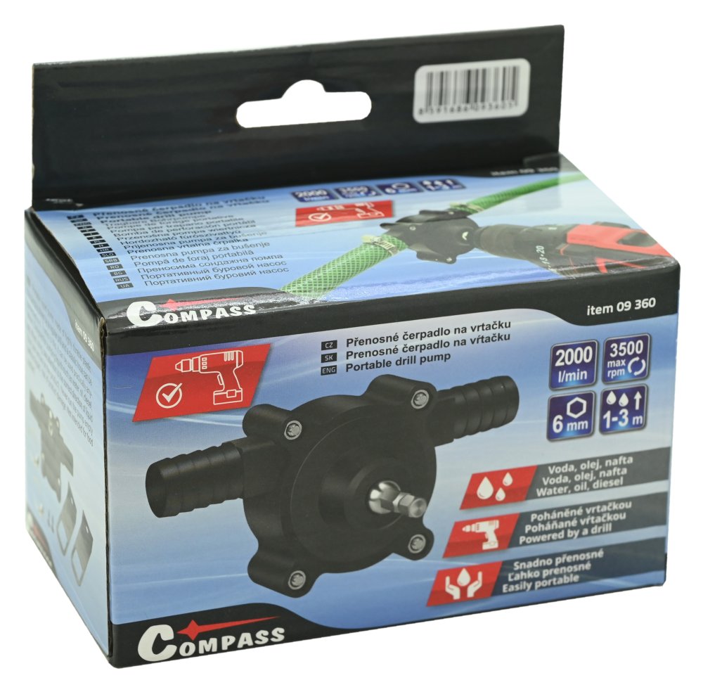 Rychlost průtoku kapaliny čerpadlem je závislá na otáčkách vrtačky. Při 1500 otáčkách za minutu je průtok cca 15 litrů za minutu, při 3000 otáčkách je průtok 30 litrů za minutu. Doporučujeme používat rychlost v rozmezí 1500 – 3500 otáček za minutu. Výtlačná výška čerpadla dosahuje 1-3 m.