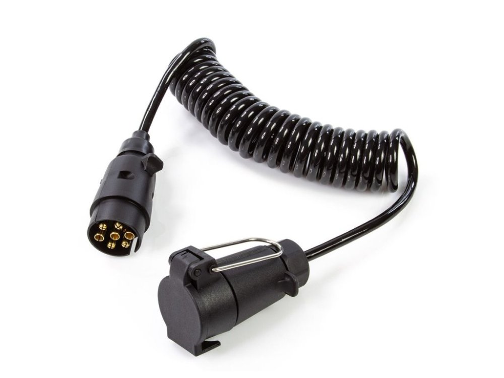 Spirálový prodlužovací kabel se 7pólovou zástrčkou (samec) a zásuvkou (samice) představuje spolehlivé řešení pro elektrické propojení přívěsů, návěsů, karavanů a další přípojné techniky. Kabel je určený pro 12V systémy a zajišťuje stabilní a bezpečné elektrické spojení pro osvětlení a signalizaci přívěsu.