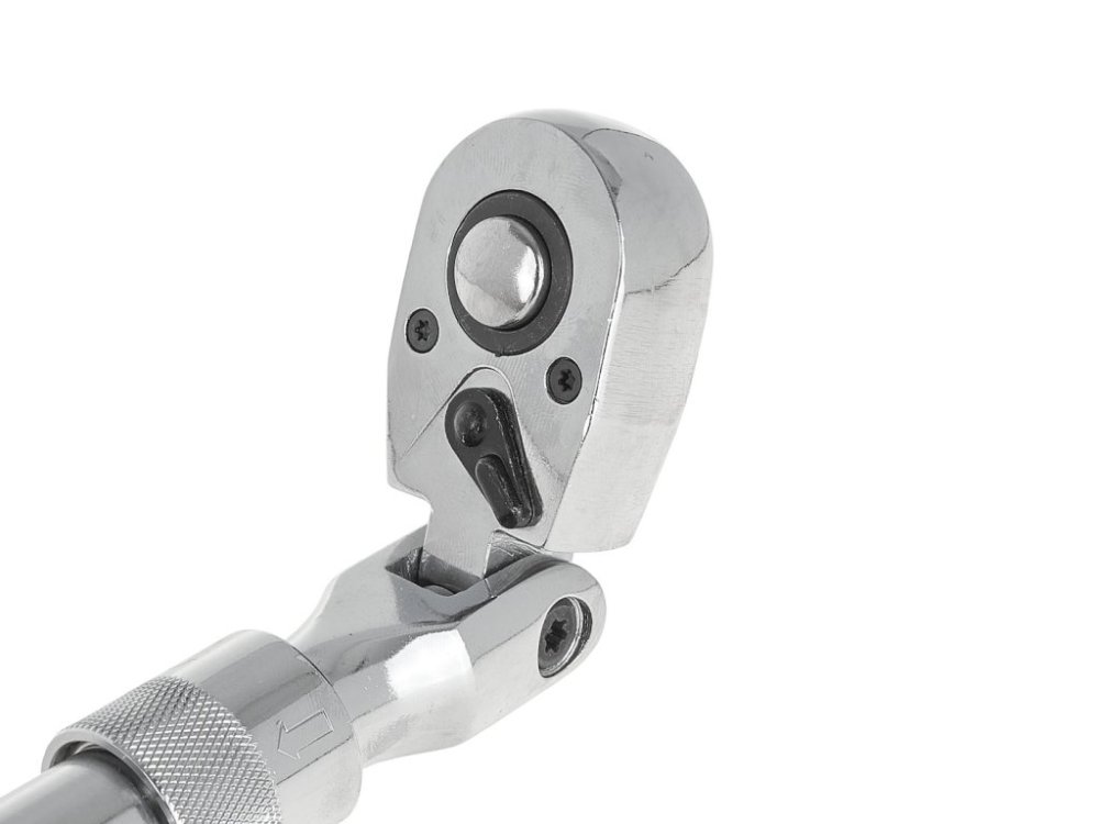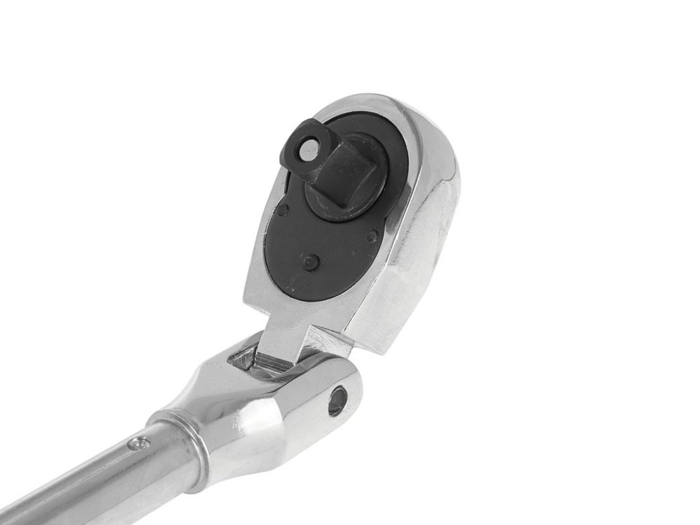 Teleskopická ráčna 1/2" s hlavou na kloubu je vyrobena z odolné chrom-vanadiové oceli (CrV) a je určena pro použití v dílnách, servisech i domácích podmínkách. Nastavitelná délka v rozmezí 370 až 510 mm umožňuje lépe dosáhnout na šrouby i v obtížně přístupných místech a zároveň nabízí větší točivý moment pro snadnější práci. Hlava na kloubu přispívá k vyšší flexibilitě nástroje a umožňuje práci v úhlech, kam se běžná ráčna nedostane