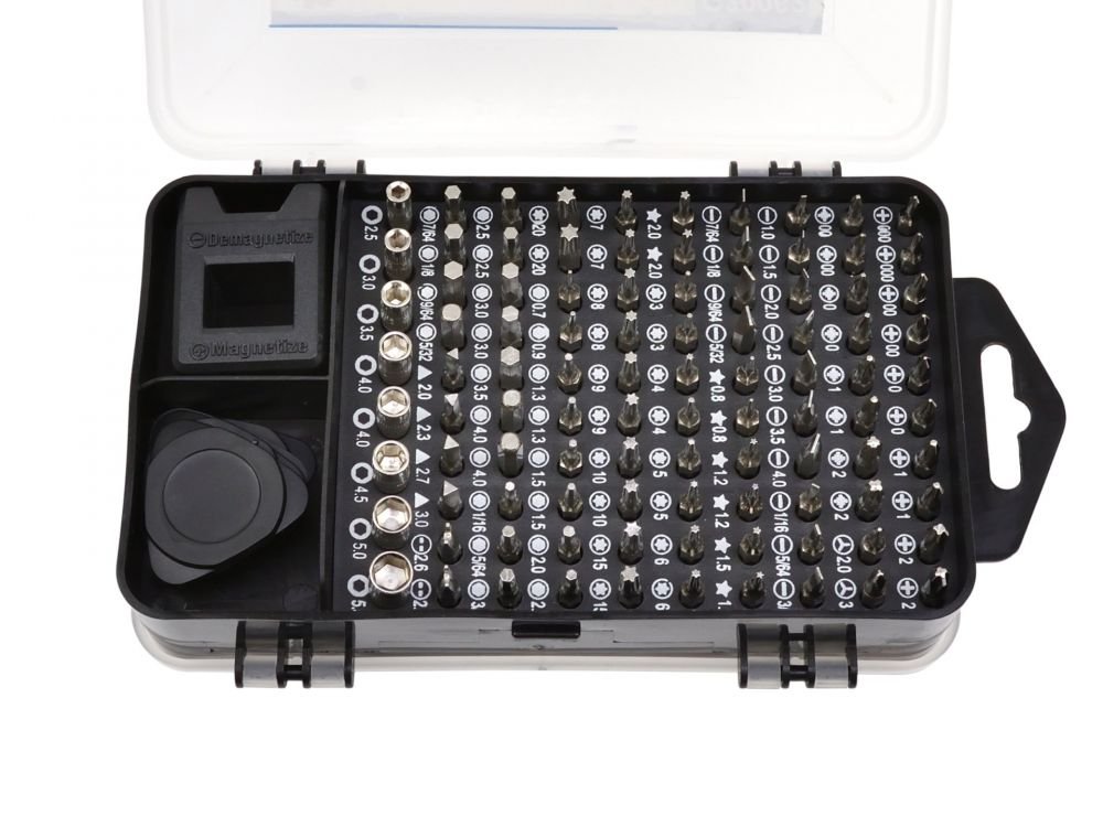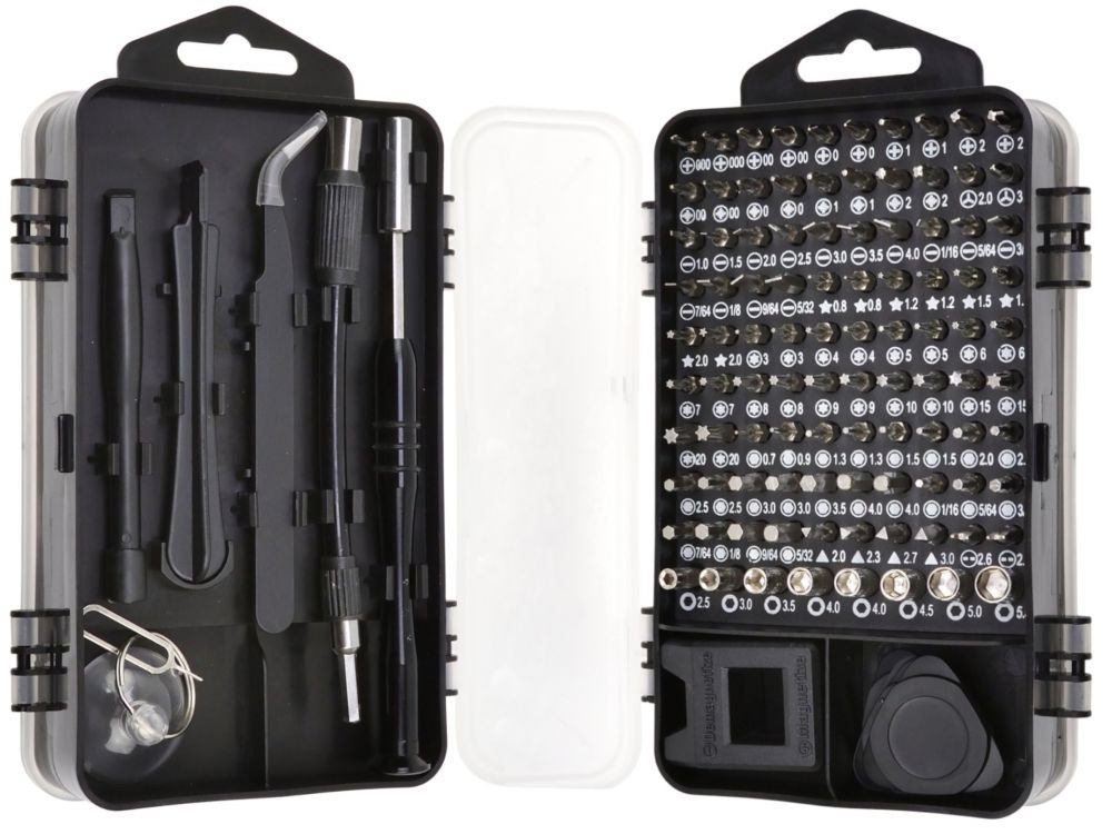 Profesionální multifunkční vyměnitelná přesná ruční sada nástrojů. Dodává se se všemi potřebnými nástroji pro nejrůznější úlohy. Perfektní pro opravy notebooků, mobilních zařízení a dalších přesných předmětů, jako jsou náramkové hodinky a brýle.