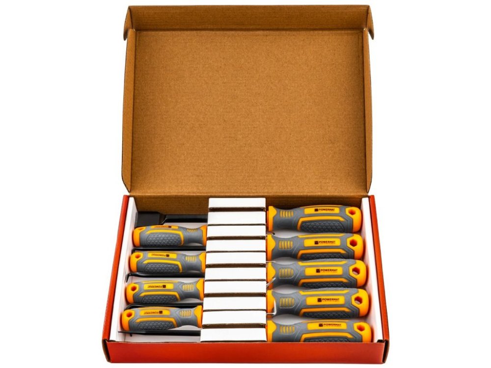 Každý nástroj má ergonomickou rukojeť s protiskluzovým povrchem o průměru 35 mm pro bezpečný a pohodlný úchop během náročných operací. Magnetický hrot umožňuje stabilní přidržení drobných součástek, jako jsou podložky, svorky nebo šrouby, což zabraňuje jejich náhodnému upadnutí a výrazně usnadňuje práci v místech s omezeným prostorem. Rukojeti jsou opatřeny praktickým otvorem pro zavěšení v dílně a přehlednou organizaci nářadí.